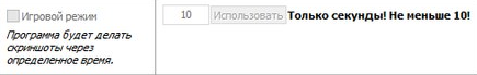 Чтобы активировать данный режим поставьте галочку "Игровой режим", введите в поле значение в секундах (не меньше 10) и нажмите кнопку "Использовать".