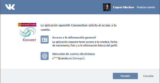 2)  нажмите кнопку "Разрешить" (на рисунке Permitir).