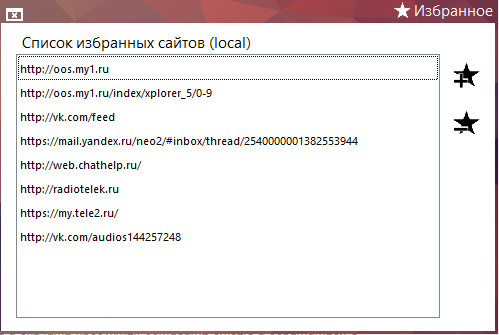 Здесь отображаются все ваши избранные сайты.