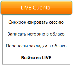 • Синхронизация сессии [Сохраняет все данные (история, закладки, стартовую страницу) в облако].