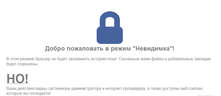 Режим "Невидимка" - режим браузера, который не будет записывать вашу историю посещений и не будет сохранять кэш.